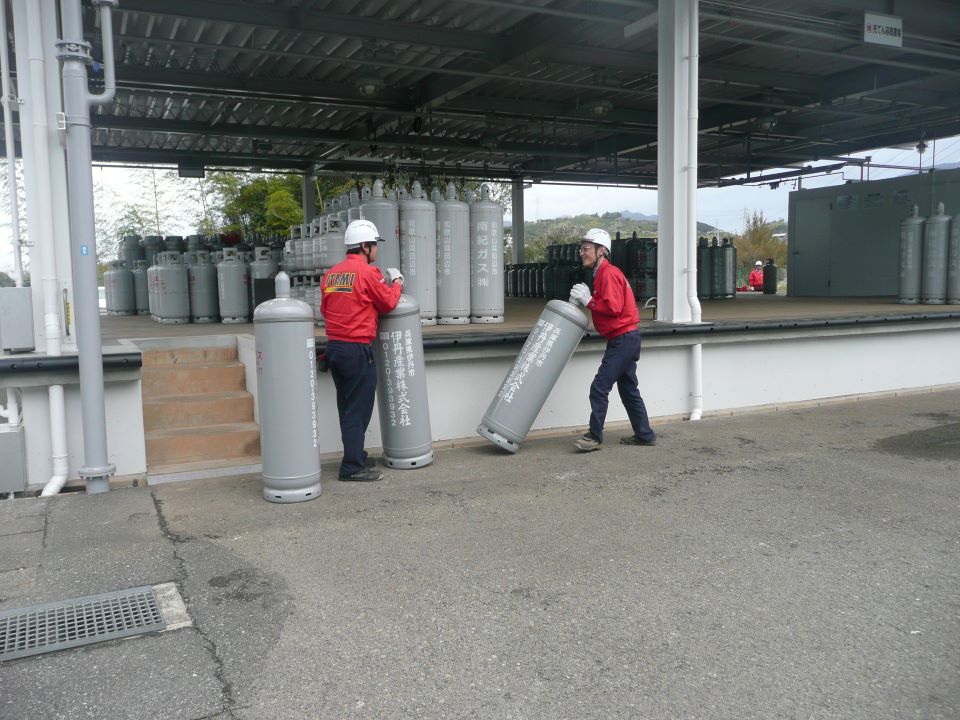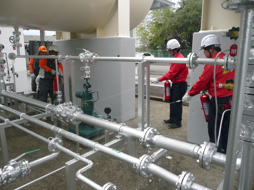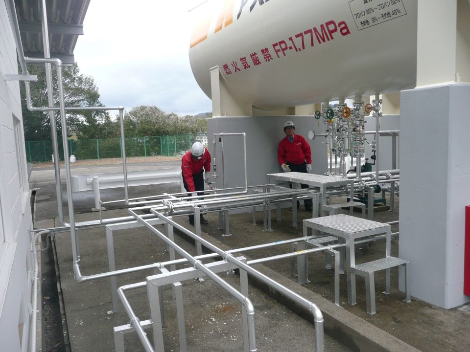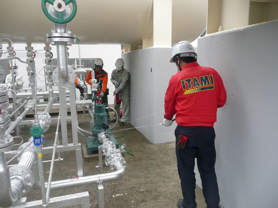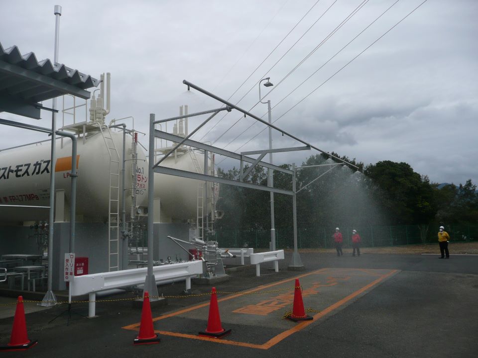 LPガス設備等による二次災害の発生を抑制するための措置として、緊急通報訓練と設備に対する応急処置訓練に重点を置き実施する。